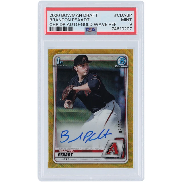 Brandon Pfaadt Arizona Diamondbacks Autographed 2020 Bowman Chrome 1st Bowman Gold Wave Refractor #CDA-BP #29/50 PSA Authenticated 9 Card