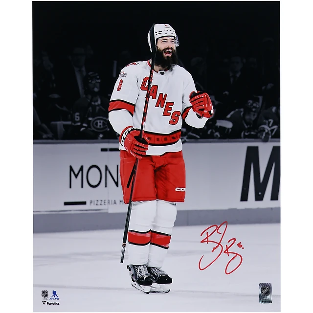 Brent Burns Carolina Hurricanes dédicacé 16" x 20" maillot blanc célébrant la photographie Spotlight