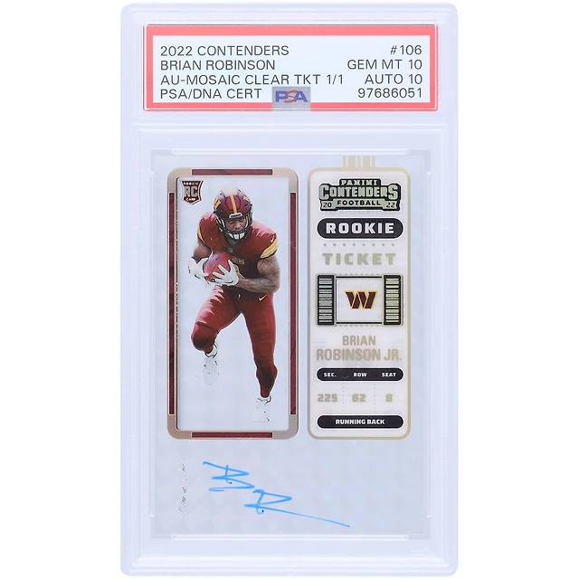 Brian Robinson Jr. Washington Commanders Autographed 2022 Panini Contenders Mosaic Rookie Ticket #106 #1/1 PSA Authenticated 10/10 Rookie Card