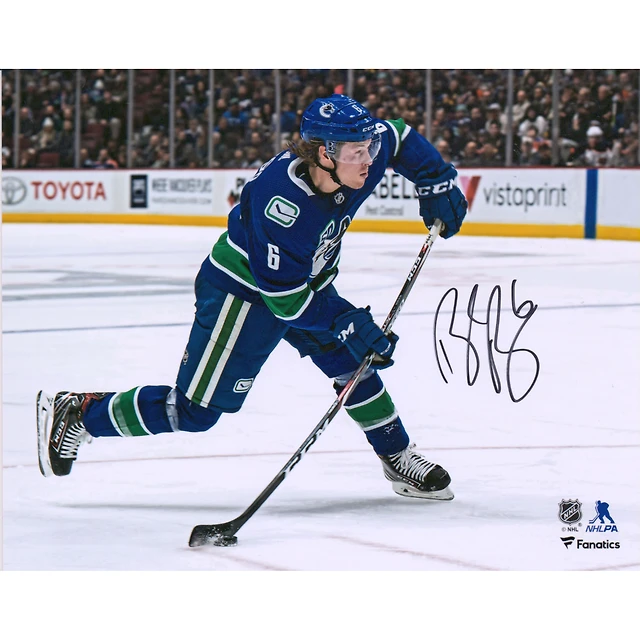 Brock Boeser Vancouver Canucks Photographie dédicacée de tir en maillot bleu 8" x 10"
