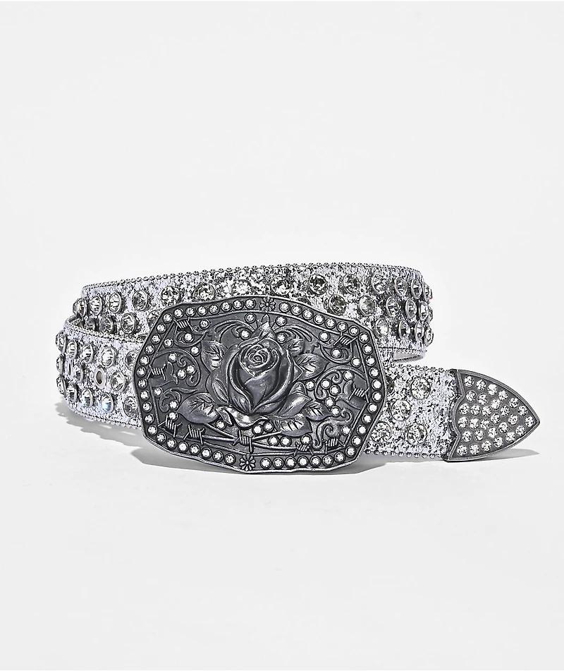 Broken Promises Rose Rhinestone Silver Belt