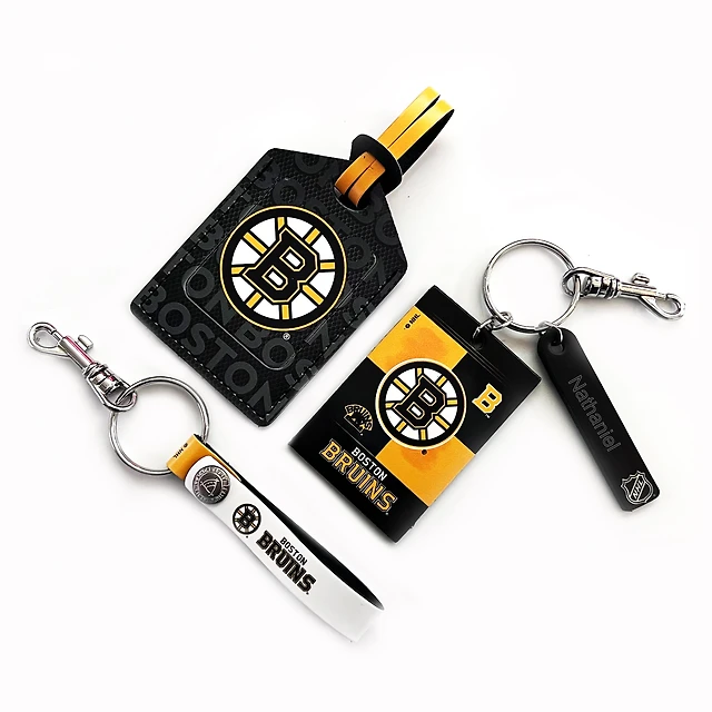 Bruins de Boston - Coffret cadeau trois pièces en cuir avec étiquette personnalisée