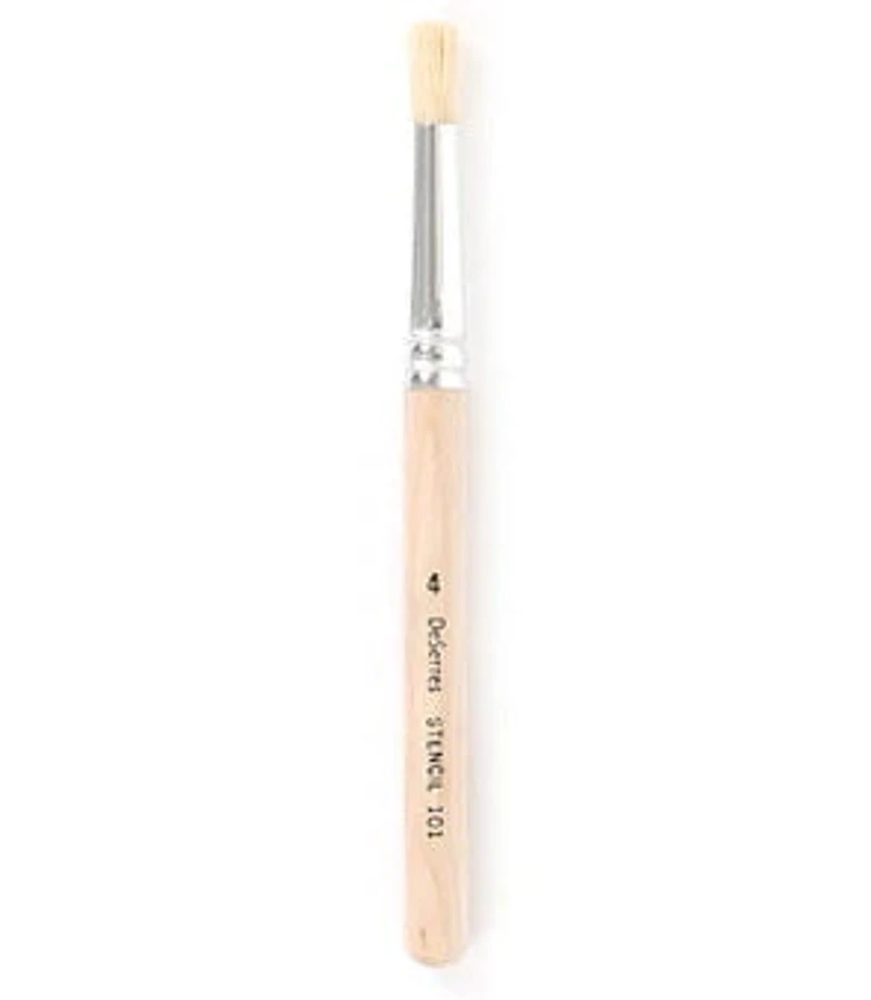 The DeSerres stencil brush with natural hog bristles is useful to stencil a variety of small motifs. The DeSerres stencil brush with natura hog bristles is suited for a variety of paint types and is used on walls, furniture, fabric and a range of other surfaces. The DeSerres paintbrushes are an excellent value. Care: Caring for paintbrushes is essential to keeping them in good working condition and to their life span. Oil: dip the paintbrush in a solvent such as taltine. Clean in soapy water and rinse in warm water. Acrylic: clean in soapy water and rinse in warm water. Practical information: Never let dry before cleaning. Using a hydrating paintbrush cleaner after using taltine or soap prevents bristles from drying and keeps the supple shape of the paintbrush.