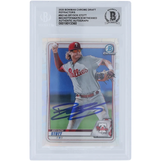 Bryson Stott Philadelphia Phillies Autographié 2020 Bowman Chrome Draft Refractors #BD-140 Beckett Fanatics Witnessed Authenticated Card