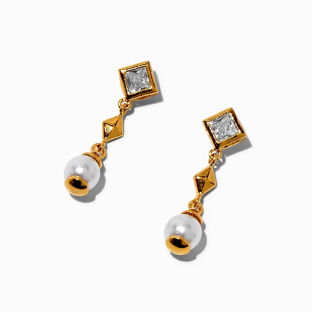 C LUXE by Claire's 18kt Gold Plated Cubic Zirconia Square & Pearl Micro Drop Earrings