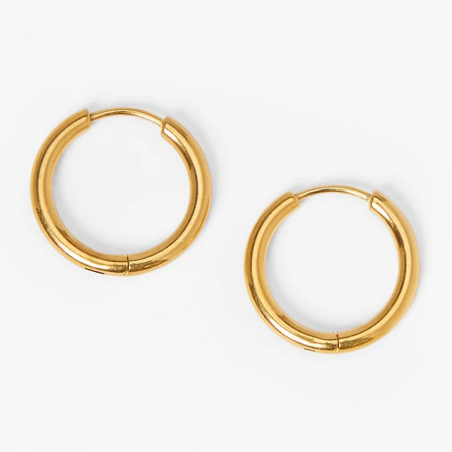 C LUXE by Claire's Gold-tone Titanium 12mm Sleek Hoop Earrings