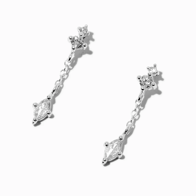 C LUXE by Claire's Sterling Silver Cubic Zirconia Micro Marquise Linear Drop Earrings