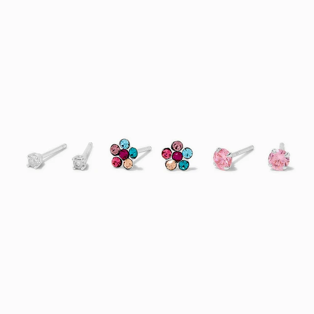 C LUXE by Claire's Sterling Silver Purple Flower Stud Earrings - 3 Pack