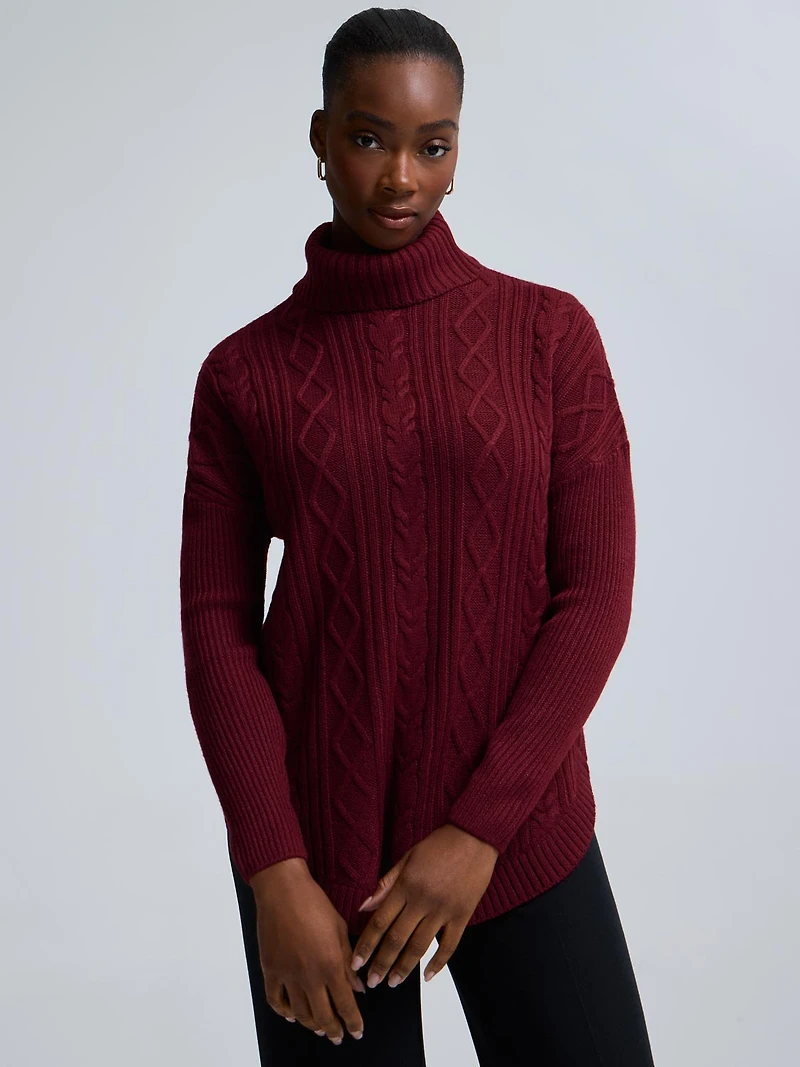 Chilly days? No problem! Brave the cold with the ultimate winter-ready cable knit turtleneck sweater.