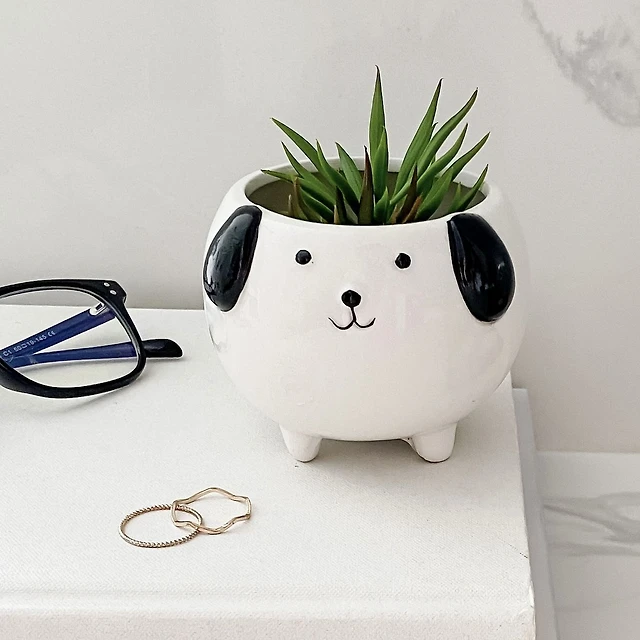 Cache-pot chien en céramique