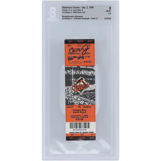 Cal Ripken Jr. Baltimore Orioles a autographié son 400e coup de circuit. Les fans de Beckett ont été témoins d'un billet authentifié 8/10 du 2 septembre 1999 avec l'inscription « 400th HR »