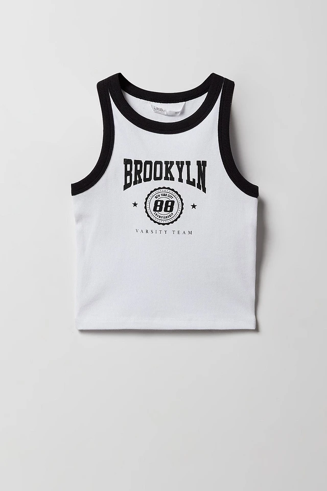 Camisole côtelée Ringer à imprimé Varsity pour filles