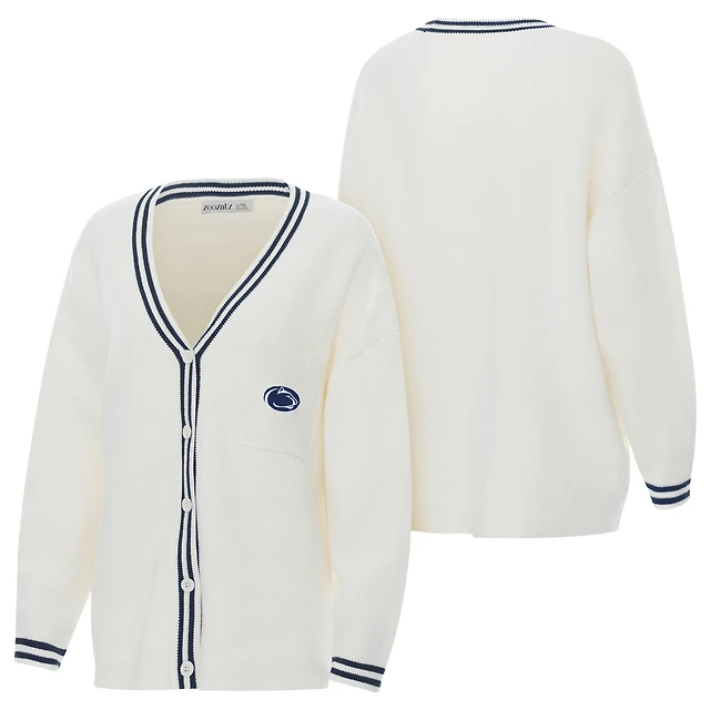 Cardigan boutonné en tricot rayé crème pour femme ZooZatz Penn State Nittany Lions