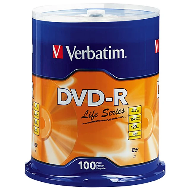 Carrousel de disques DVD-R 16X de Verbatim de 4,7 Go (97177) - Paquet de 100
