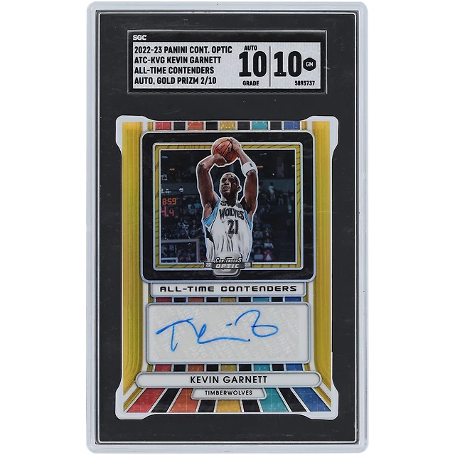 Carte authentifiée 10/10 SGC 2022-23 Panini Contenders Optic All Time Gold Prizm #ATC-KVG #2/10 signée Kevin Garnett Minnesota Timberwolves