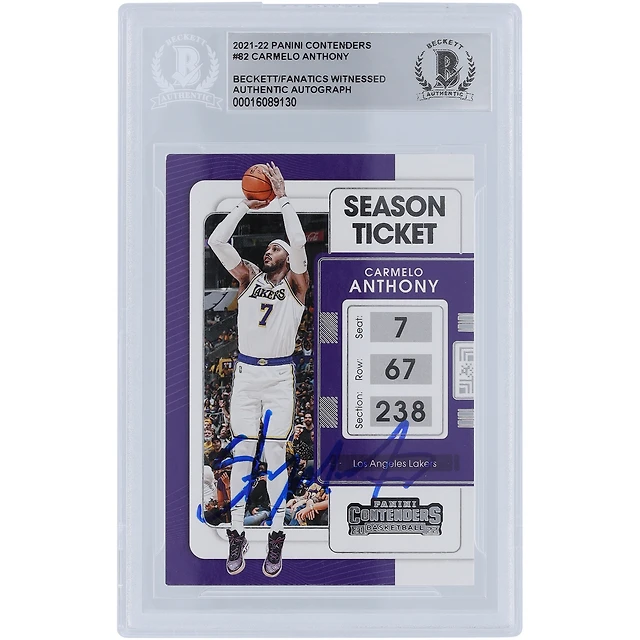 Carte authentifiée autographiée par Carmelo Anthony des Los Angeles Lakers Panini Contenders #82 Beckett 2021-22