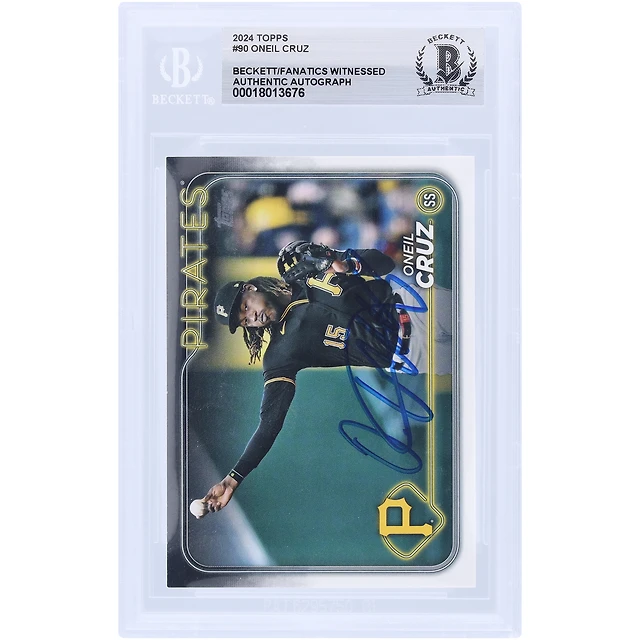Carte authentifiée autographiée par Oneil Cruz des Pirates de Pittsburgh, série 1 Topps 2024 n° 90, Beckett Fanatics