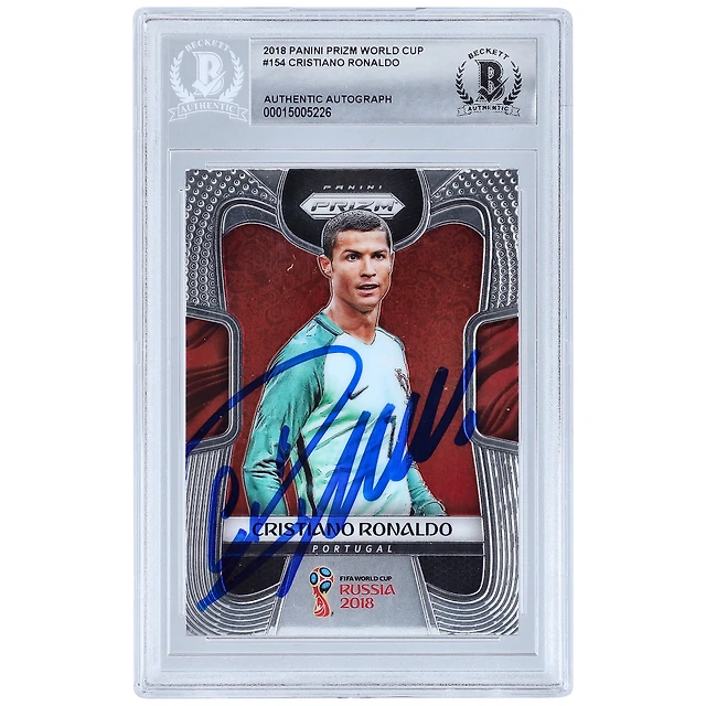 Carte authentifiée Panini Prizm World Cup 2018 #154 BAS autographiée par Cristiano Ronaldo de l'équipe nationale du Portugal