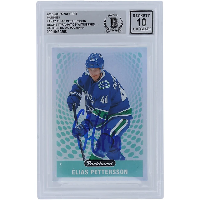Carte autographiée 2019-20 Upper Deck Parkhurst Parkies #PK-27 Beckett Fanatics Witnessed Authenticated 10 Card par Elias Pettersson des Canucks de Vancouver