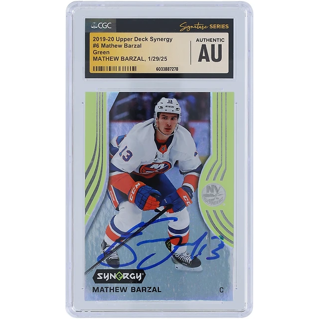 Carte autographiée 2019-20 Upper Deck Synergy Green #6 des Islanders de New York par Mathew Barzal, carte authentifiée et témoin des fanatiques de la CGC