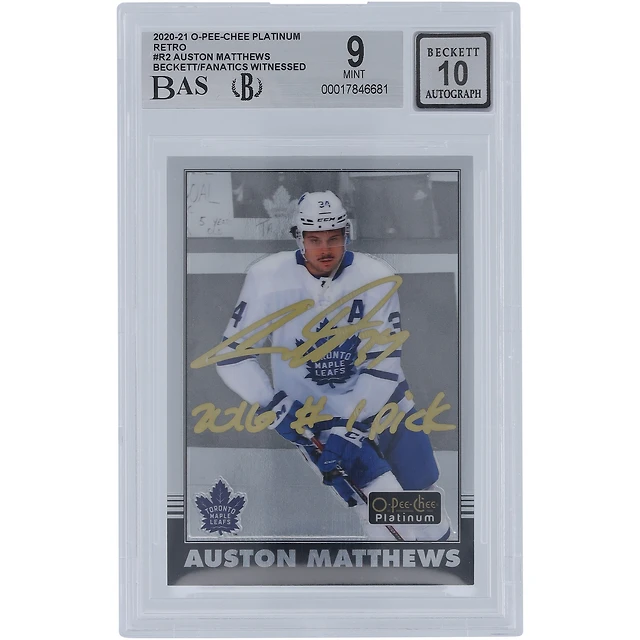 Carte autographiée 2020-21 Upper Deck O-Pee-Chee Platinum Retro Gold Ink #R-2 Beckett Fanatics Witnessed Authenticed 9/10 avec inscription « 2016 #1 Pick » par Auston Matthews des Maple Leafs de Toronto