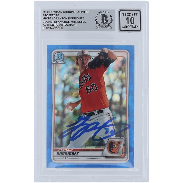 Carte autographiée 2020 Bowman Chrome Prospects Sapphire #BCP-22 Beckett Fanatics Witnessed Authenticated 10 Card de Grayson Rodriguez Baltimore Orioles