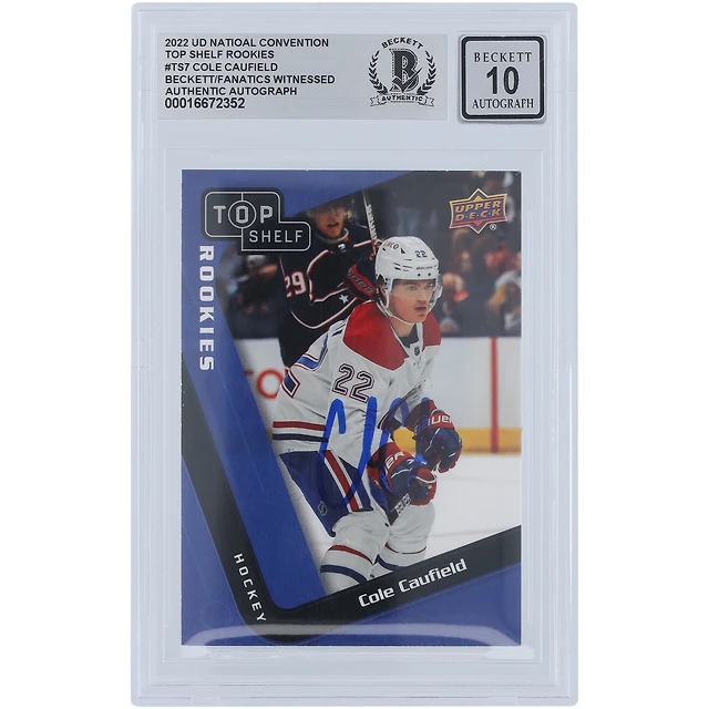 Carte autographiée Cole Caufield des Canadiens de Montréal 2022-23 Upper Deck National Convention Top Shelf Rookies #TS-7 Beckett Fanatics Witnessed Authenticated 10