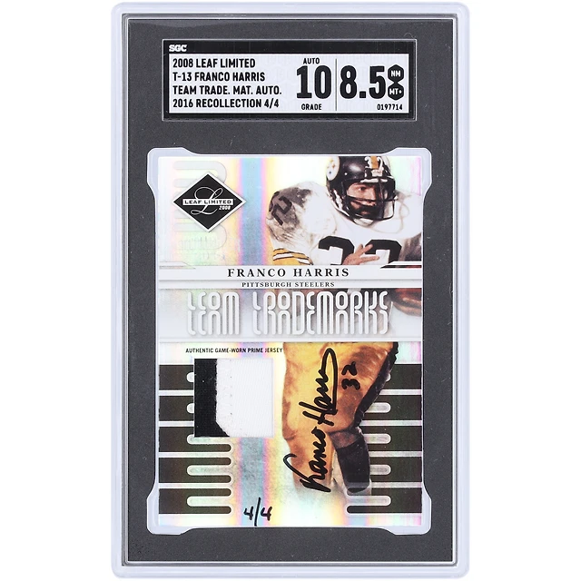 Carte autographiée Donruss Leaf 2008 des Pittsburgh Steelers, marque déposée, matériaux, autographe, 2 couleurs, souvenir 2016, n° T-13, n° 4/4, SGC, authentifiée, 8,5/10