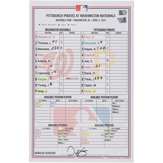 Carte de composition des équipes des Nationals de Washington contre les Pirates de Pittsburgh le 4 avril 2024