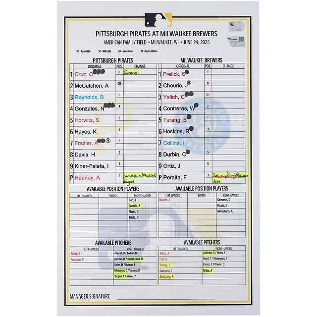 Carte de composition des équipes des Pirates de Pittsburgh contre les Brewers de Milwaukee, le 24 juin 2025