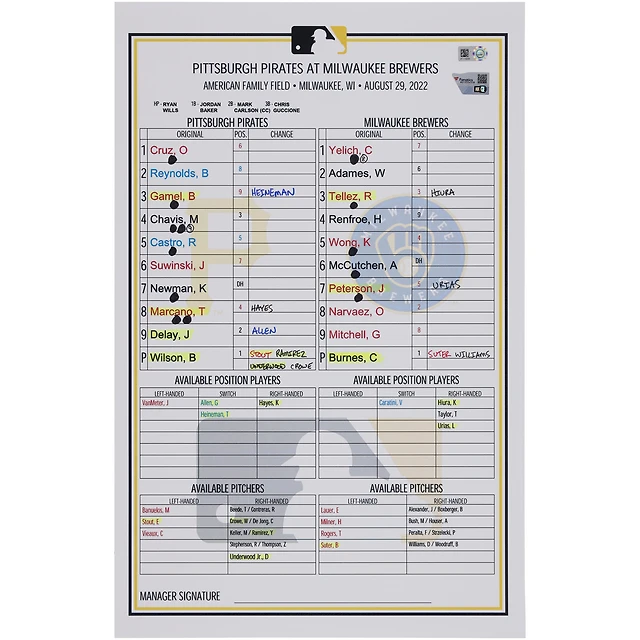 Carte de composition des équipes des Pirates de Pittsburgh contre les Brewers de Milwaukee le août 2022