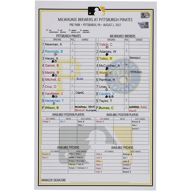 Carte de composition des équipes des Pirates de Pittsburgh contre les Brewers de Milwaukee le août 2022