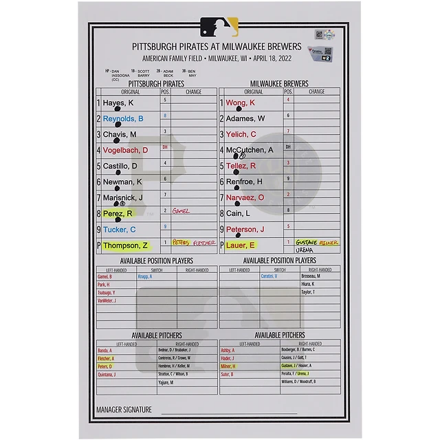 Carte de composition des équipes des Pirates de Pittsburgh contre les Brewers de Milwaukee le avril 2022