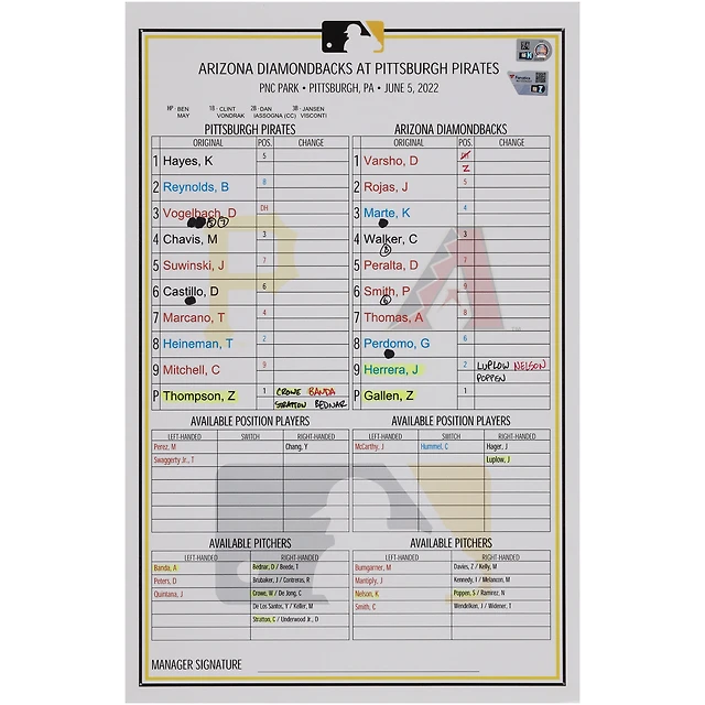 Carte de composition des équipes des Pirates de Pittsburgh contre les Diamondbacks de l'Arizona le 5 juin 2022