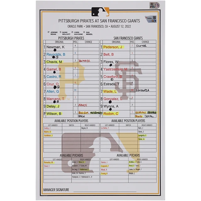 Carte de composition des équipes des Pirates de Pittsburgh contre les Giants de San Francisco le août 2022