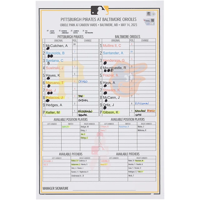 Carte de composition des équipes des Pirates de Pittsburgh contre les Orioles de Baltimore le 14 mai 2023