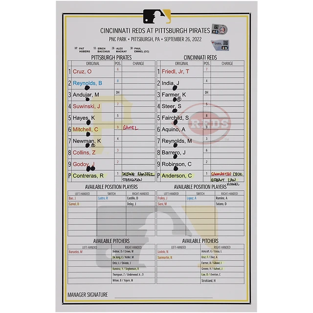 Carte de composition des équipes des Pirates de Pittsburgh contre les Reds de Cincinnati le septembre 2022