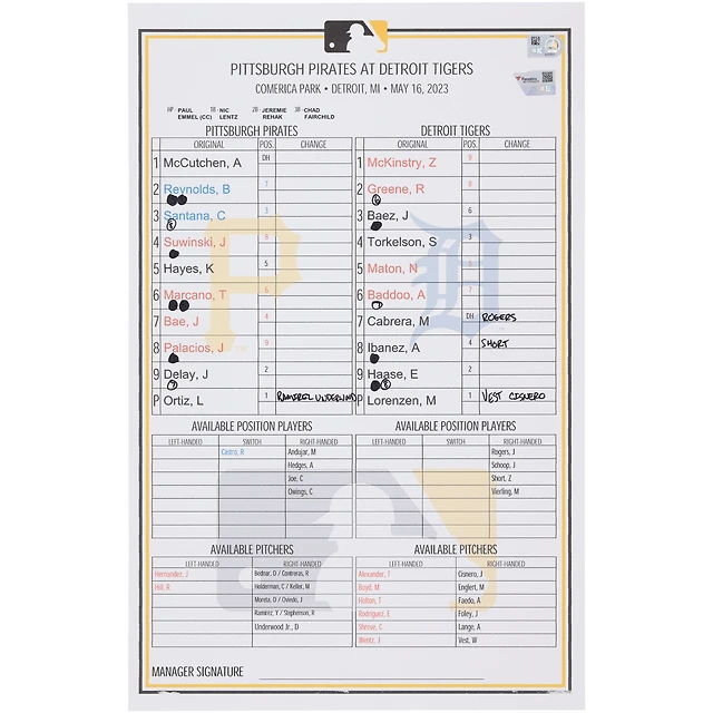Carte de composition des équipes des Pirates de Pittsburgh contre les Tigers de Détroit le mai 2023
