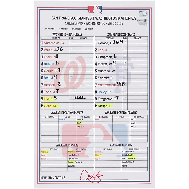 Carte de composition des Nationals de Washington contre les Giants de San Francisco le 23 mai 2025