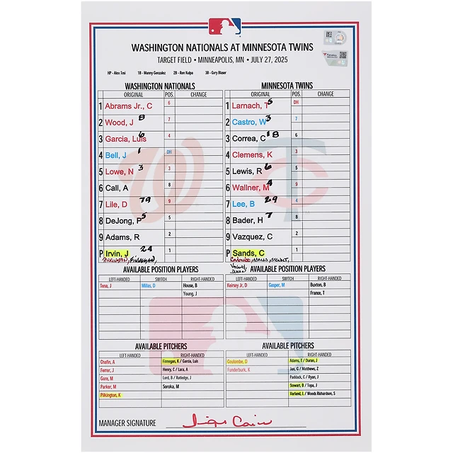 Carte de composition des Nationals de Washington contre les Twins du Minnesota, le 27 juillet 2025