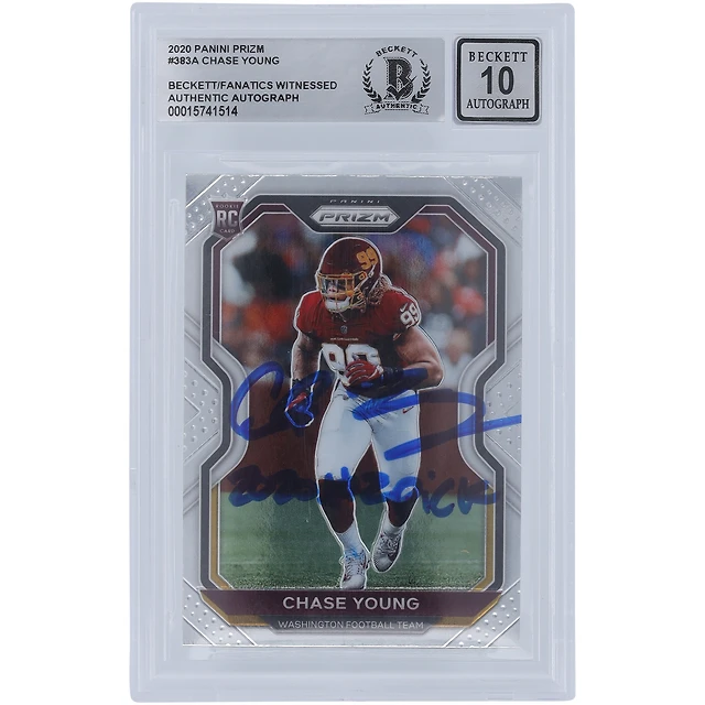 Carte de recrue 10 authentifiée 2020 Panini Prizm #383 signée Chase Young Washington Commanders par les fanatiques de Beckett avec l'inscription « 2020 #2 Pick »