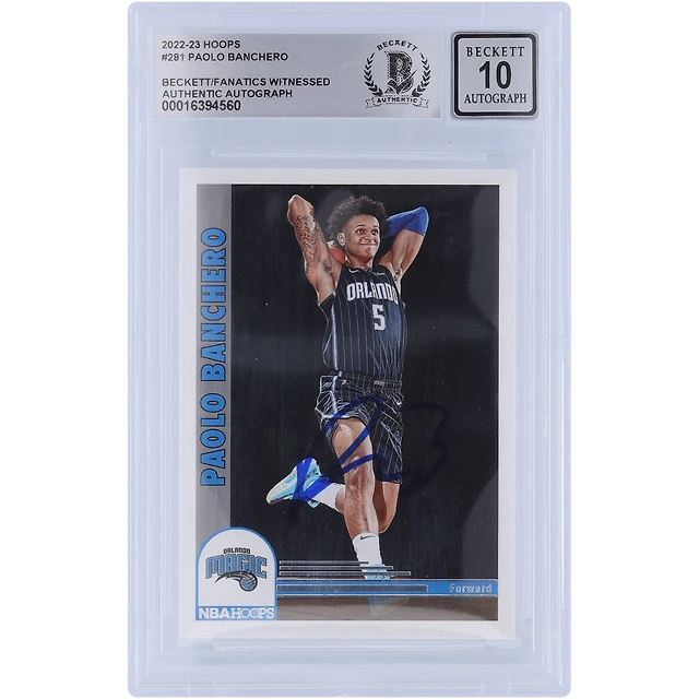 Carte de recrue 10 authentifiée 2022-23 Panini Hoops #281 Beckett Fanatics Witnessed 2022-23 Autographiée par Paolo Banchero Orlando Magic