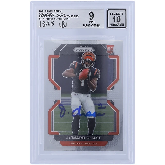 Carte de recrue 9/10 authentifiée signée Ja'Marr Chase Cincinnati Bengals 2021 Panini Prizm #337 Beckett Fanatics Witnessed