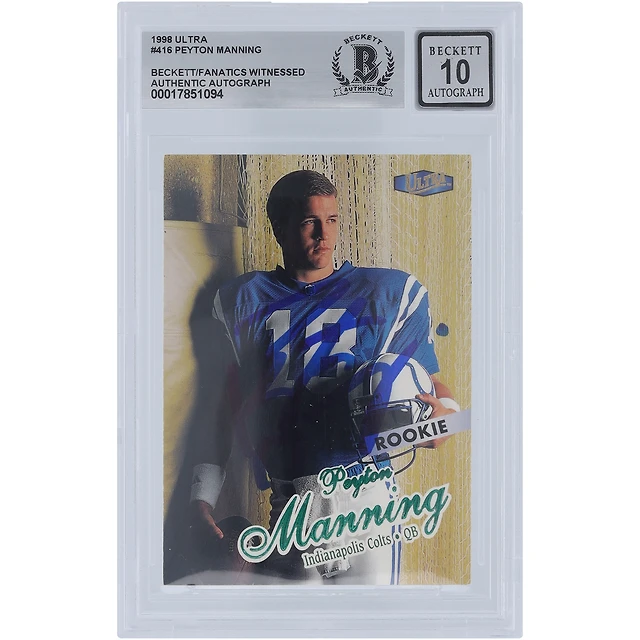 Carte de recrue authentifiée 10 de Peyton Manning Indianapolis Colts 1998 Fleer Ultra #416 Beckett Fanatics Witnessed 10 Rookie