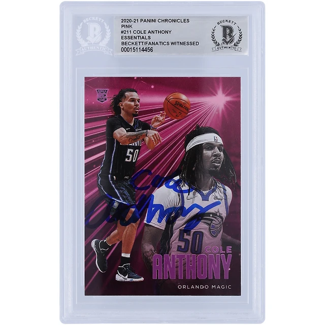 Carte de recrue authentifiée autographiée Cole Anthony Orlando Magic 2020-21 Panini Chronicles Essentials Pink Variation #211 Beckett Fanatics Witnessed