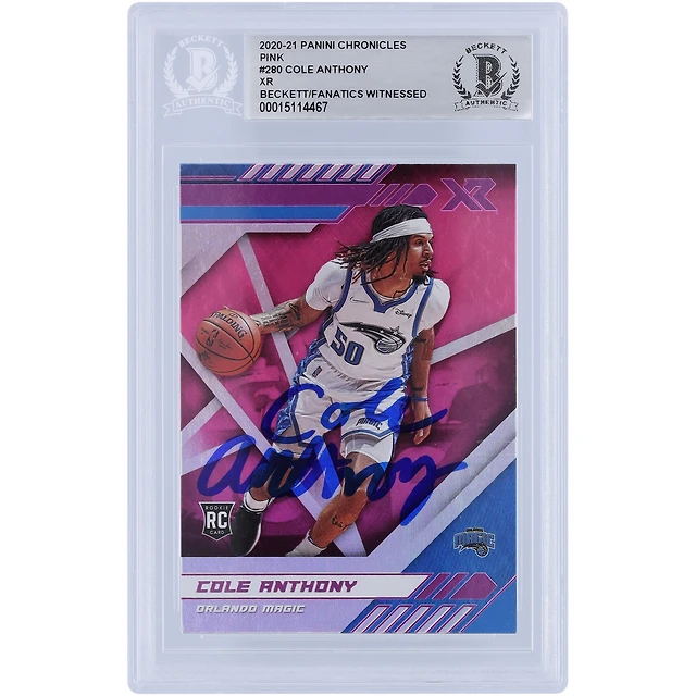 Carte de recrue authentifiée autographiée Cole Anthony Orlando Magic 2020-21 Panini Chronicles XR Pink Variation #280 Beckett Fanatics