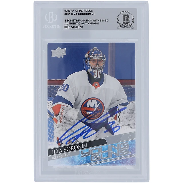 Carte de recrue authentifiée autographiée par Ilya Sorokin des Islanders de New York 2020-21 Upper Deck Series 2 Young Guns #461 Beckett Fanatics