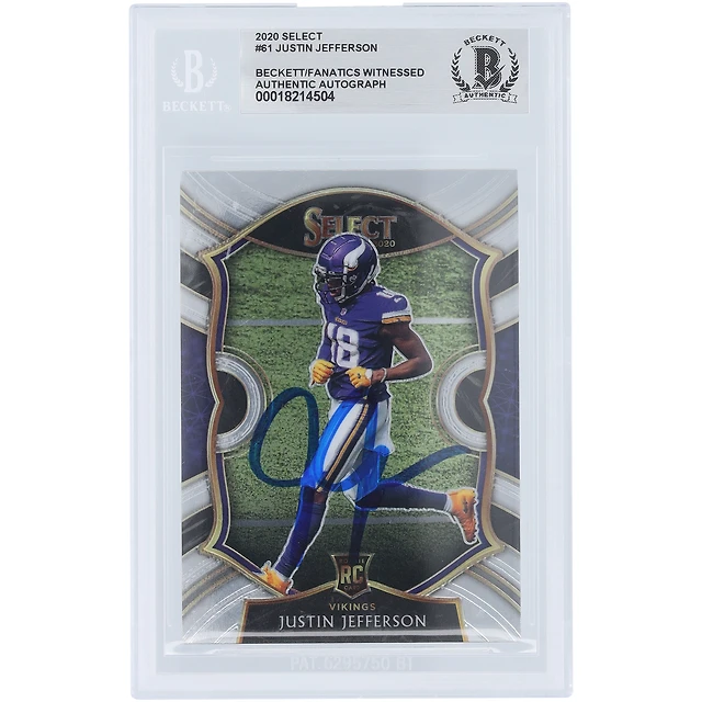 Carte de recrue authentifiée autographiée par Justin Jefferson des Minnesota Vikings 2020 Panini Select Concourse #61 Beckett Fanatics