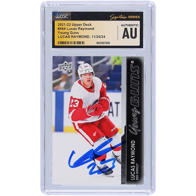 Carte de recrue authentifiée autographiée par Lucas Raymond Detroit Red Wings 2021-22 Upper Deck Series 2 Young Guns #464 CGC Fanatics Witnessed