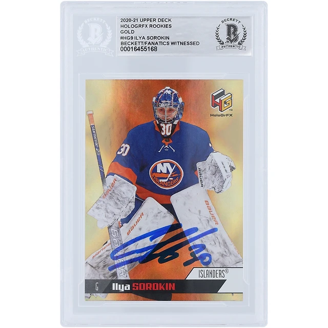 Carte de recrue authentifiée dédicacée par Ilya Sorokin des Islanders de New York 2020-21 Upper Deck HoloGRFX Gold #HG-9 Beckett Fanatics Witnessed